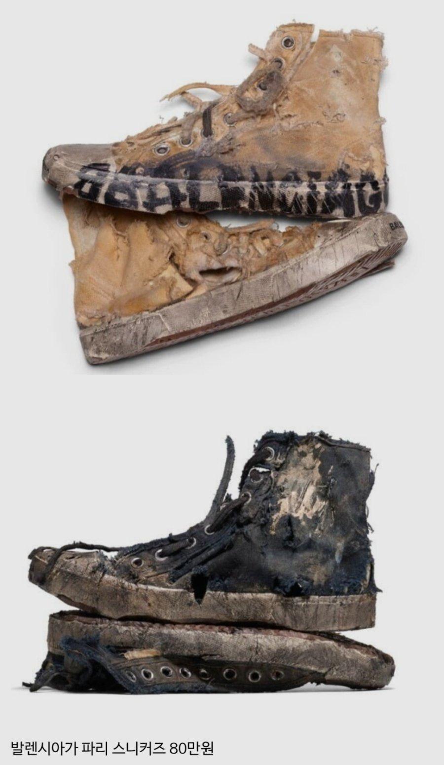 좀 더 알아보니 실제로는 파는 신발 아닙니다 실제 모델은 약간 빈티지 가공이 된 신발이고 저건 크리에이티브 디렉터인 뎀나의 출생지가 그루지야인데 우크라이나 전쟁의 폐해를 알리고자 저렇게 만들어 놓은거에요 발렌시아가 홈페이지 들어가보면 저 제품 클릭하면 실제로는 멀쩡한 제품이 나옵니다