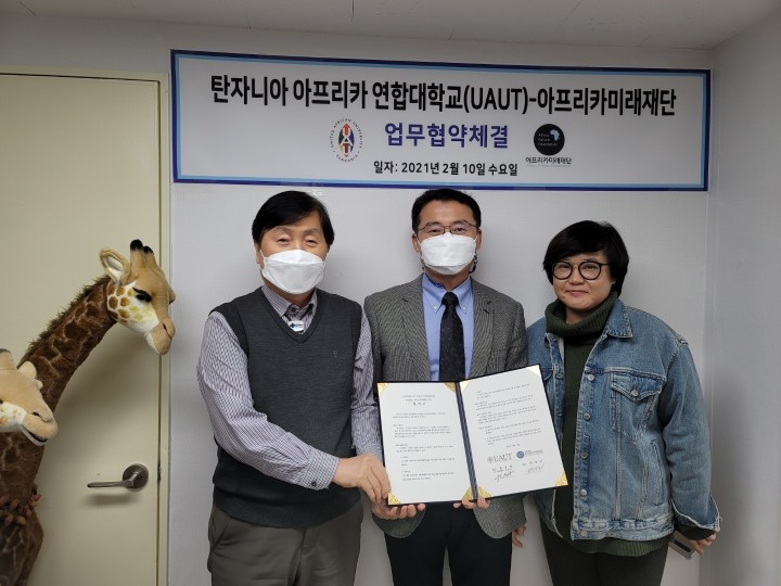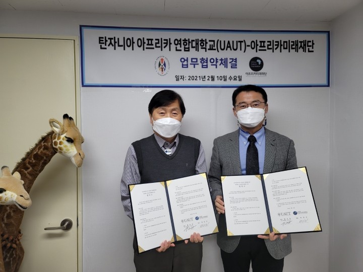 2021년 2월 10일, 탄자니아 연합대학교(UAUT)와 아프리카미래재단이 업무협약을 체결했습니다. 이를 위해 UAUT의 김범규 사무총장, AFF의 박상은 대표가 참석했습니다.