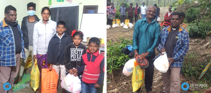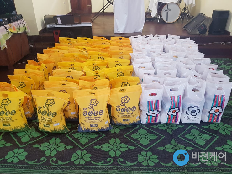 이에 비전케어는 Nuware Eliya 지역 현지인들 대상의 긴급구호-생필품 지원 활동을 진행했습니다. 현지와의 논의를 통해 가장 시급하게 필요하다고 전달받은 내용을 바탕으로 현지 공동체 2곳의 161개 가정에 각각 10kg 쌀과 분유, 밀가루를 포함한 10여가지의 식료품을 전달했습니다. 현장에서는 생필품을 전달받은 많은 현지인들이 코로나19 긴급구호 활동을 진행하는 비전케어와 한국 사람들에게 너무 감사하다며 이 마음을 꼭 전달해주라는 말도 덧붙여주었습니다.