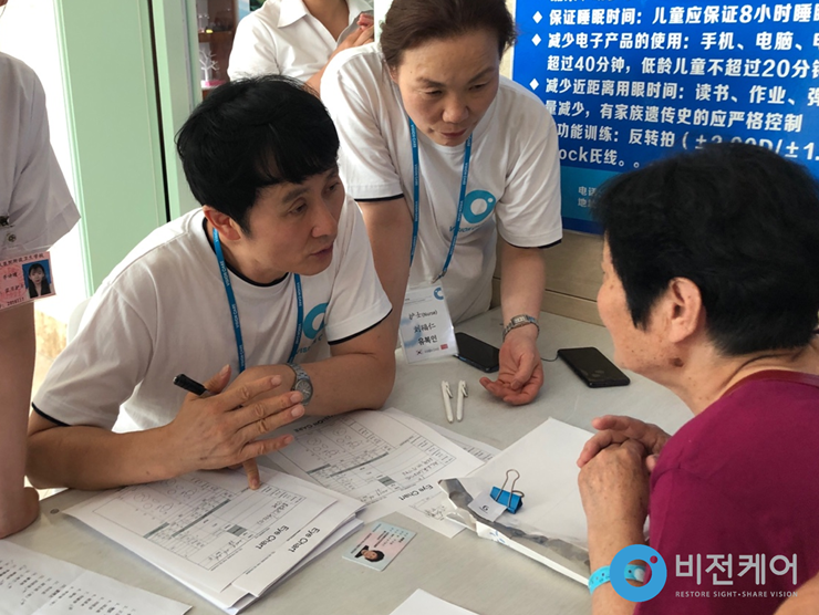 마침 그때 저도 중국의 한인 공동체와 함께 현지 외곽 지역의 열악한 안보건 환경에 안타까운 마음을 가지고 경제적으로 어려운 중국 사람들 대상의 개안수술 활동을 하고 있었기에 중국에 돌아가 김동해 이사장님의 이야기를 소개했고, 이후 비전케어와 함께 협력 사업을 진행하게 되었습니다.